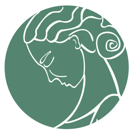This stylized logo represents calm thoughtfulness. The woman is taking a pause, head down with eyes closed, to be one with her body. Contributions: design & production.
