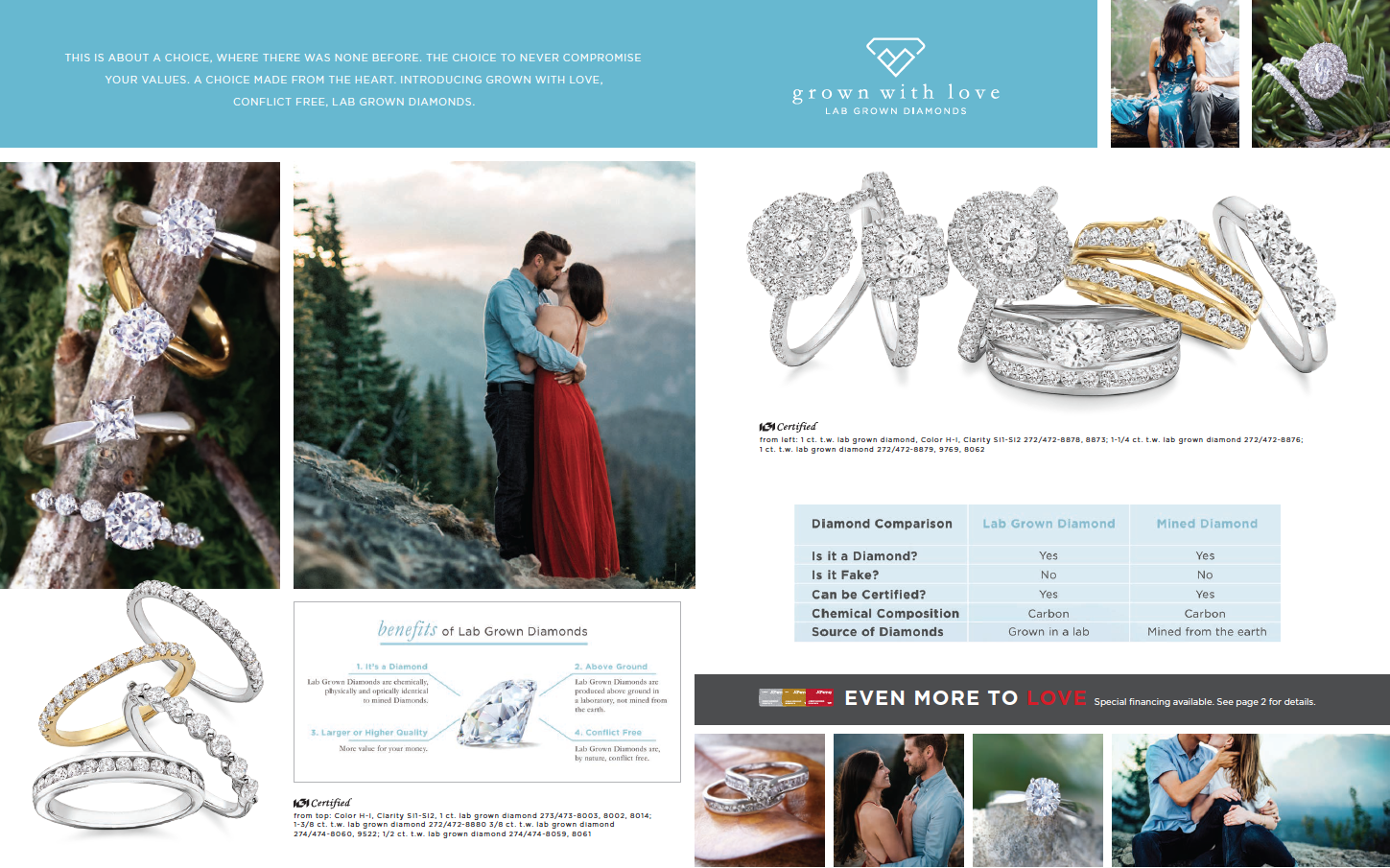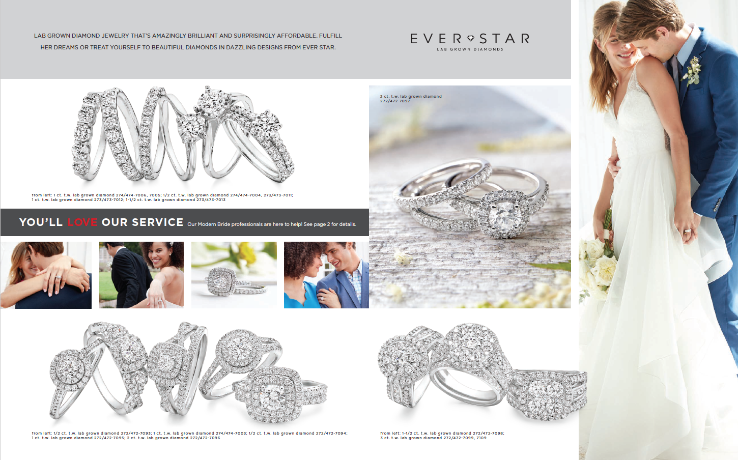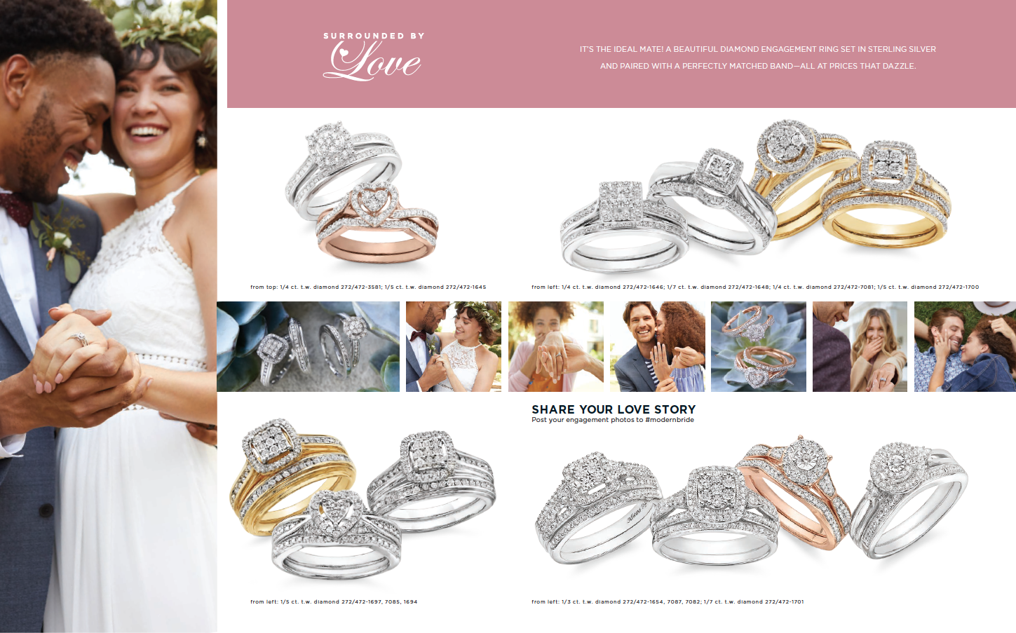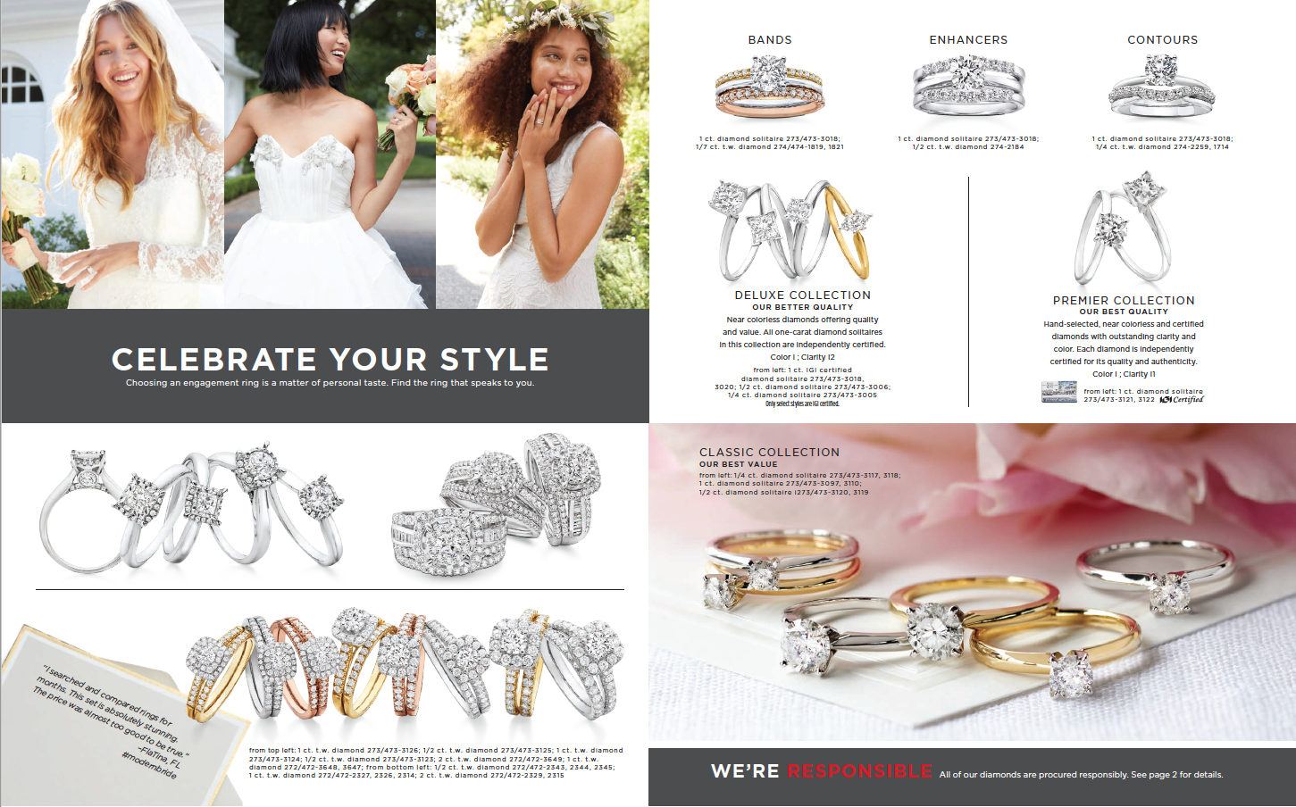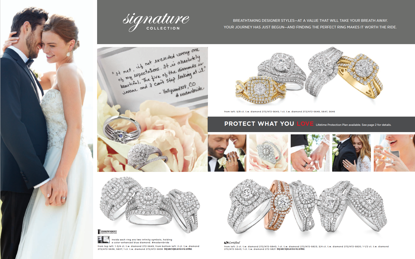 Printed engagement guide used by the store associates to support the customer buying experience for bridal jewelry. The guide showcases a large brand portfolio for all taste levels and budgets. Contributions: concept, on-figure photo art direction, creative direction and oversight to achieve a cohesive on brand piece.